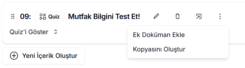 Her soru içeriğinin yanında yer alan ikonlar, içeriği hızlı ve kolay şekilde yönetmenizi sağlar: