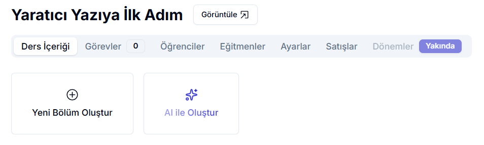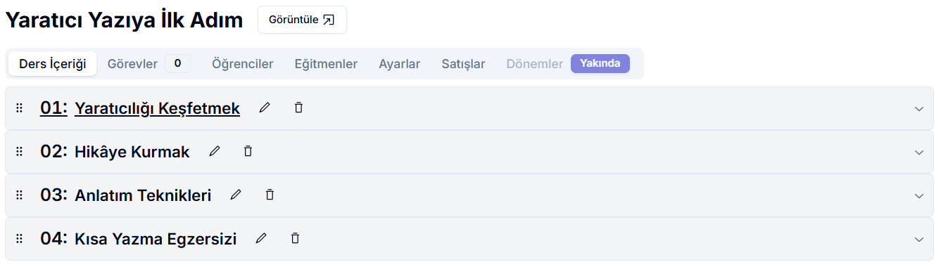 Öğrencilerinizin arayüzünü görmek için ders başlığının yanında bulunan Görüntüle butonuna tıklayabilirsiniz.