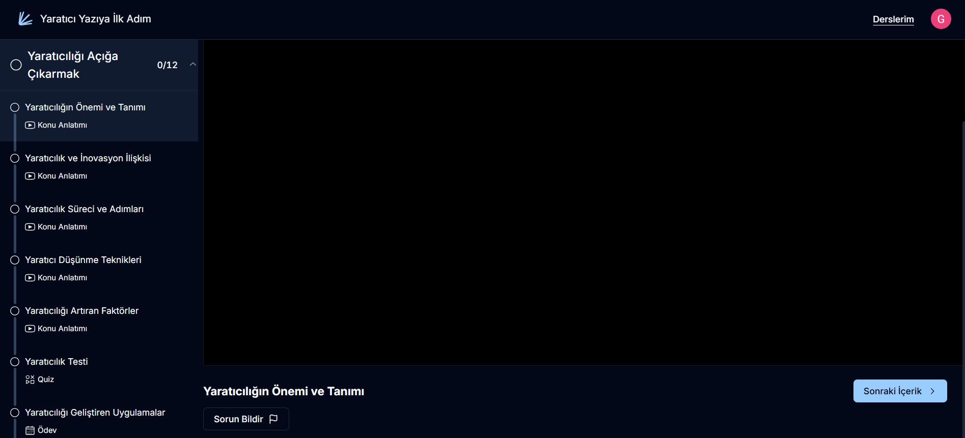 Dersiniz oluştuğunda aşağıdaki görseldeki gibi herhangi bir bölüm bulunmadan görünecektir.