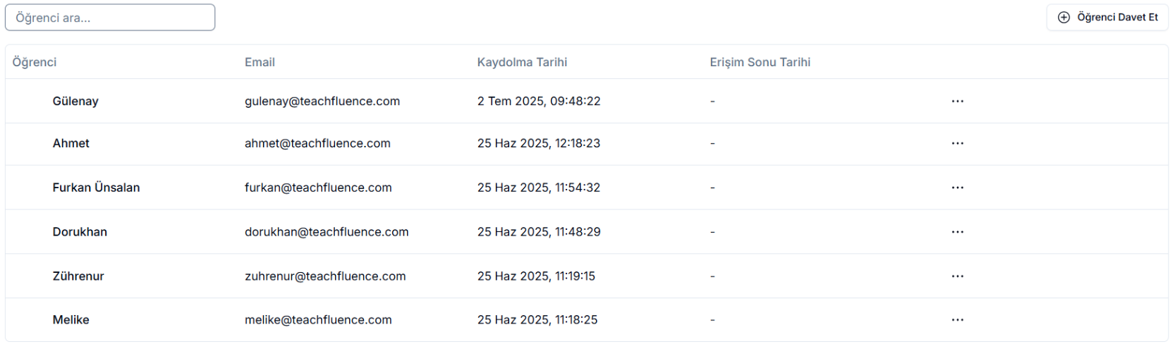 Belirli bir kursun öğrencilerini görmek için ise ilgili kursunuzun paneline girip “Öğrenciler” bölümüne tıklayarak sadece o kursa kayıtlı öğrencileri görüntüleyebilirsiniz.