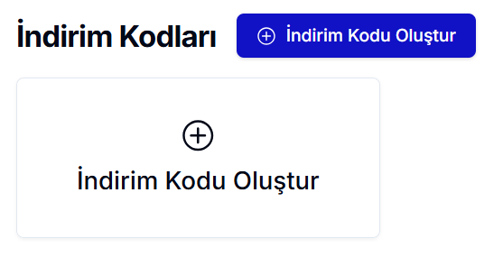 Bu panelde daha önce oluşturduğunuz tüm indirim kodlarını görüntüleyebilir ve yeni bir indirim oluşturabilirsiniz.